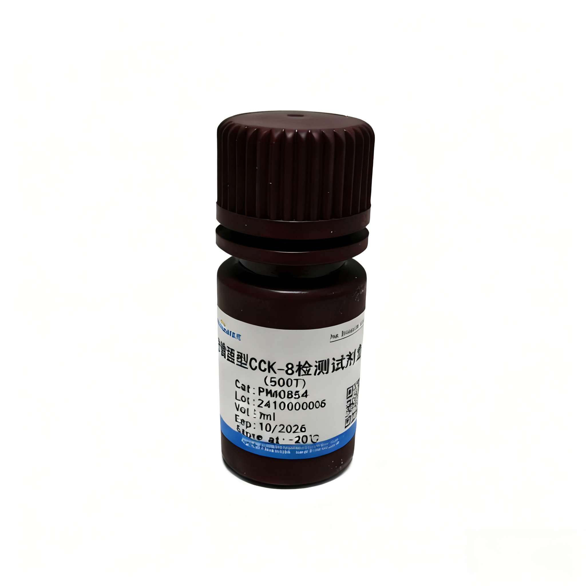 CCK-8试剂盒是基于高度水溶性的四唑盐 WST-8(2-(2-甲氧基-4-硝苯基)-3-(4-硝苯基)-5-(2,4-二磺基苯)-2H- 四唑单钠盐)而广泛应用于细胞增殖和细胞毒性的快速、高灵敏度检测的试剂盒。WST-8是一种类似于MTT的化合物,在电子介体的作用下可以被线粒体内的一些脱氢酶还原生成水溶性橙黄色甲瓒产物(formazan),产生颜色反应。细胞增殖越多越快,则颜色越深;细胞毒性越大,则颜色越浅。对于同样的细胞,颜色的深浅和细胞数目成正比。增强型CCK-8试剂盒检测灵敏度高于其他四唑盐(例如 MTT,XTT,MTS 或 WST-1)