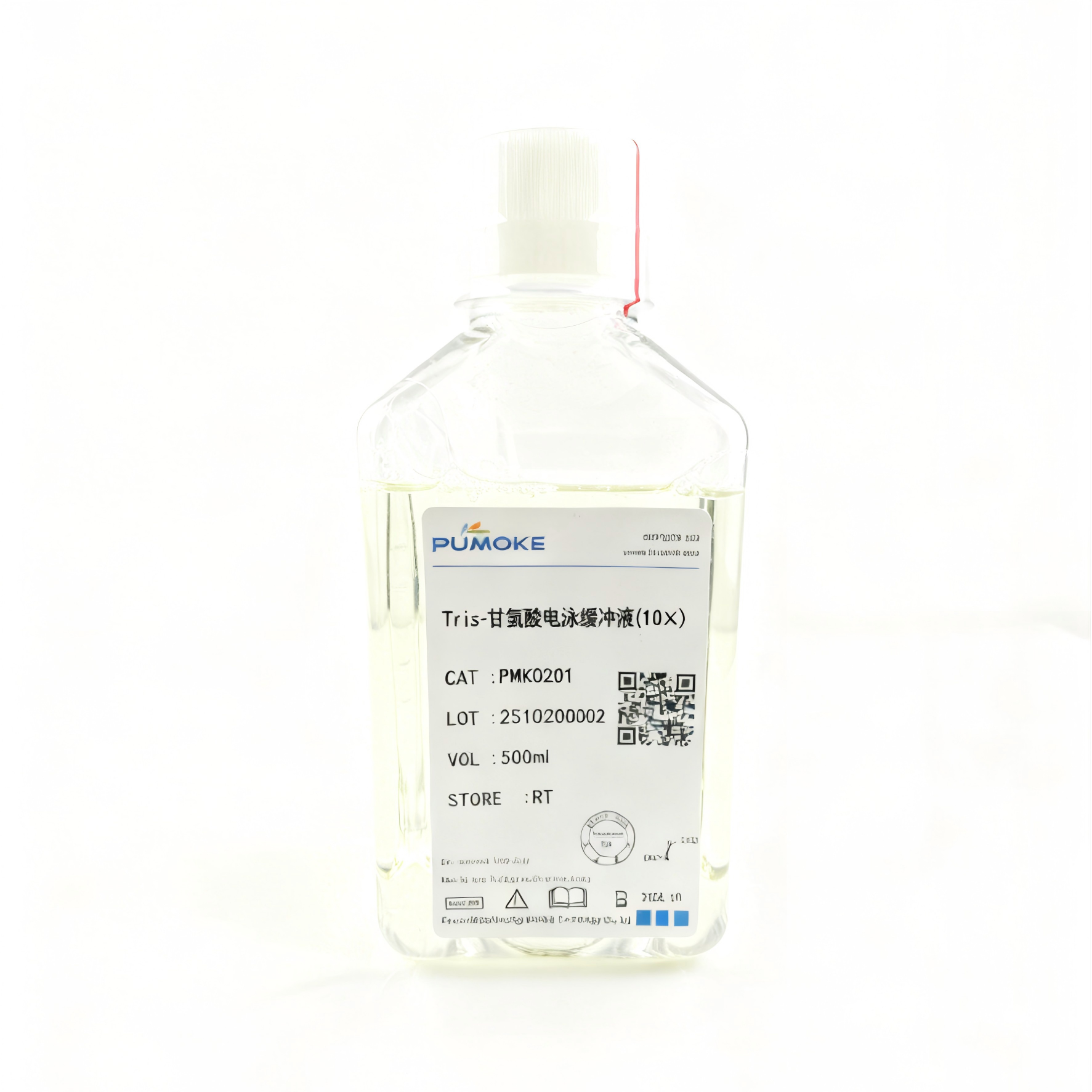 Tris-甘氨酸电泳缓冲液(10x)用于Tris-HCl缓冲系统的SDS-PAGE时的电泳缓冲液,适用于Tris-HCl缓冲系统的聚丙烯酰胺凝胶,不适合用于Hepes等缓冲体系的聚丙烯酰胺凝胶。
